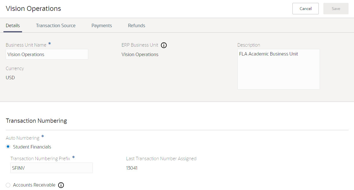 Next, set up refund methods at the academic business unit level. For information, see Academic Business Unit Configuration.