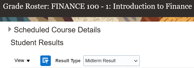 On the Grade Roster page, you can select a result type of Midterm Result. You can then assign midterm grades to students.