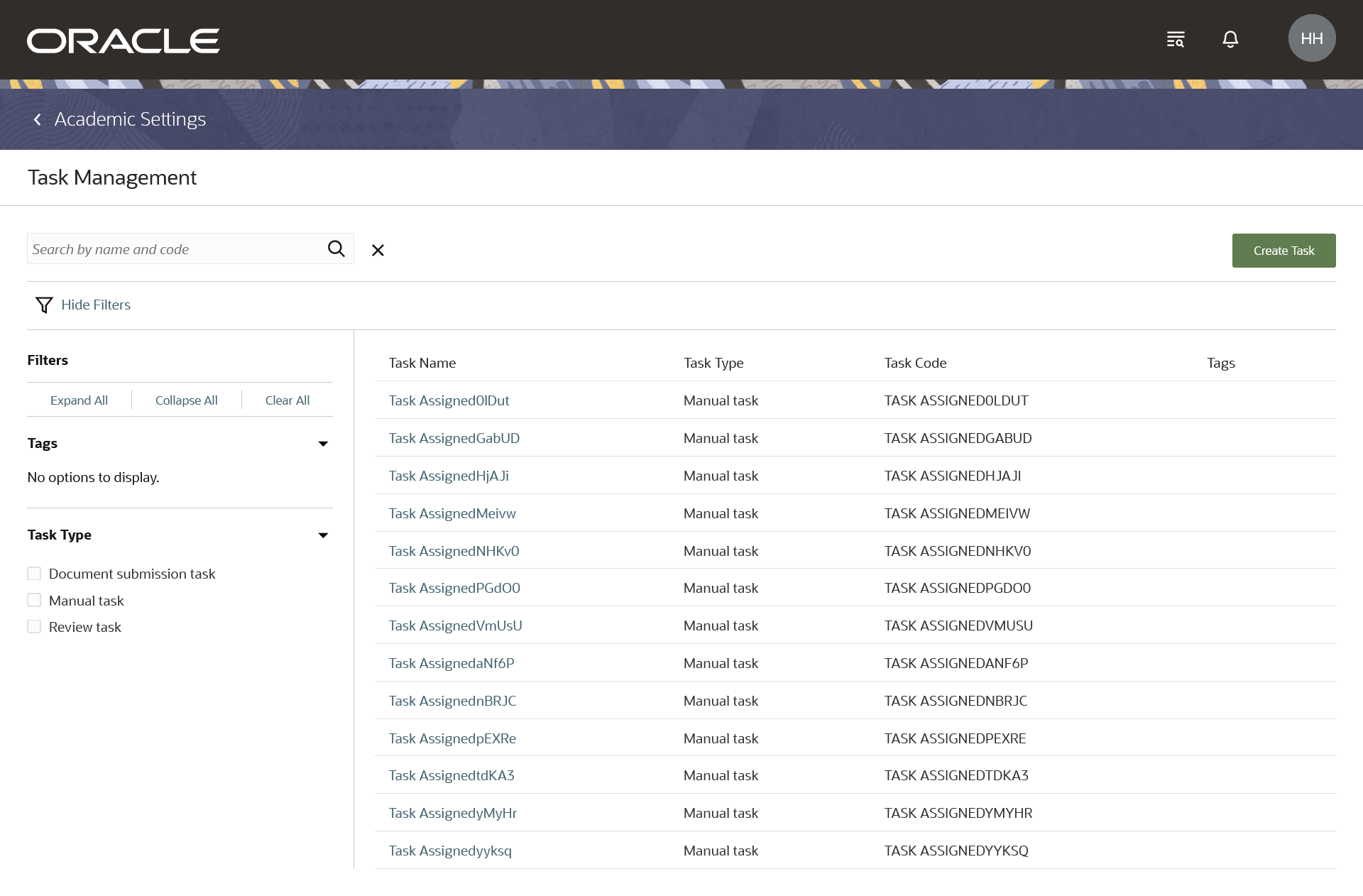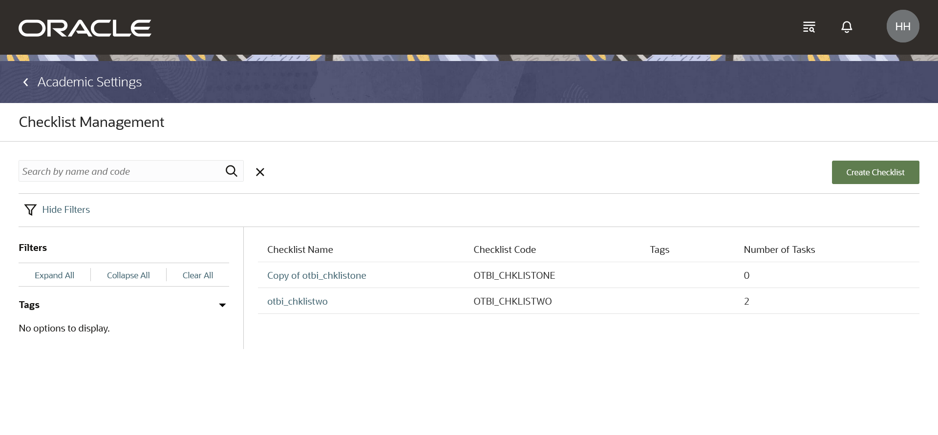 Oracle Fusion Cloud Student Management now offers an enhanced user experience for managing tasks and checklists. You can now set up and manage tasks and checklists separately.