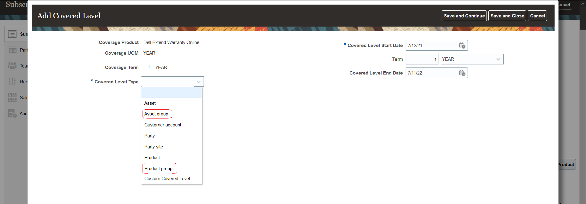 Subscription Management is enhanced to extend covered levels and entitlements support for Asset Group and Product Group. You can now create Asset Group and Product Group as new covered level types on a coverage product and provide entitlement support to all the assets or products covered under these asset or product groups.