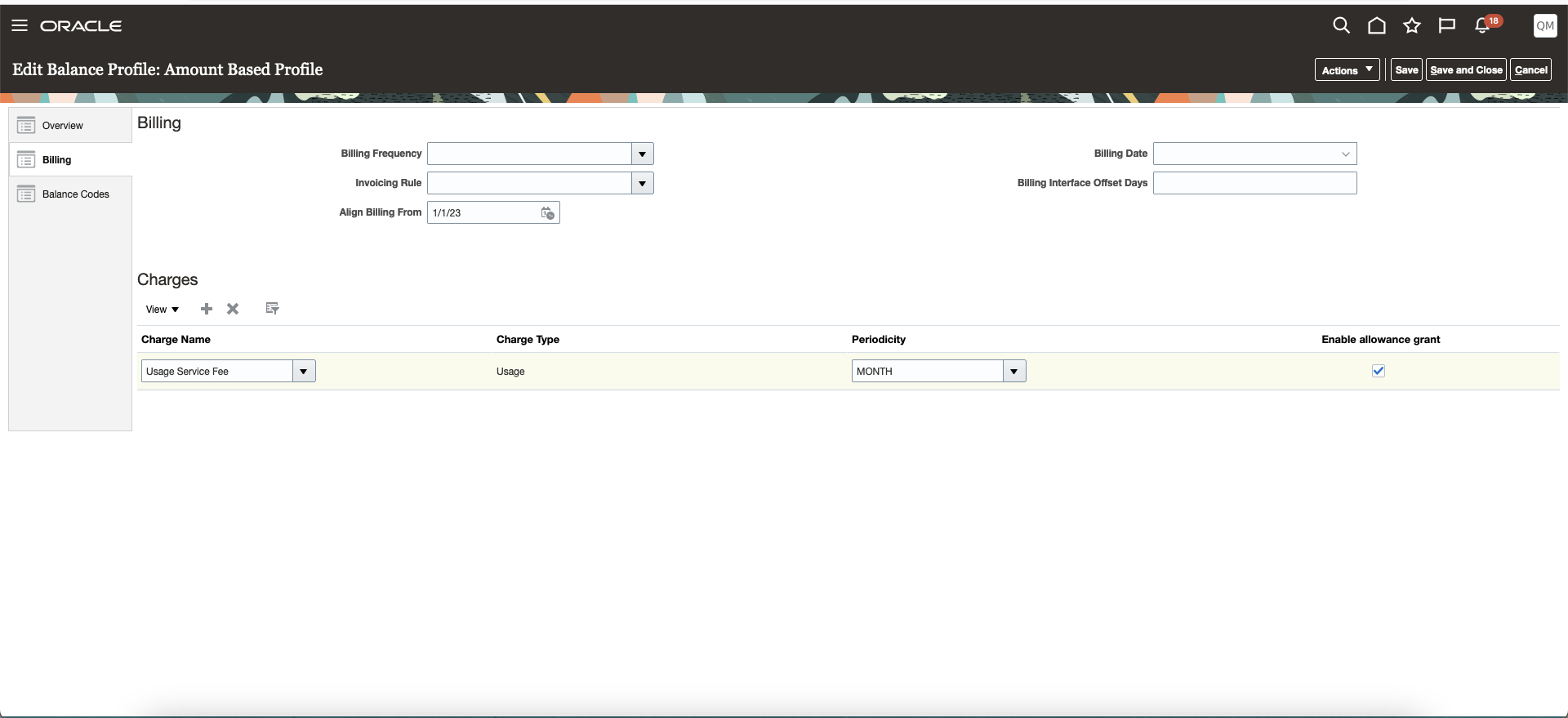 Balance Management feature allows the tracking of amount-based allowances and usages in a balance register. Users have the flexibility to configure balance codes and associate a condition to decide what usage events or allowances are considered while tracking the given balance. They can configure balance profiles to define the rule for pooling of allowances and usages, and to track all the related balances in a balance register. Allowances are tracked with effectivity dates and can optionally add a rollover period to extend the validity of allowances. During the usage rating process, it will draw-down the allowances from the respective balance register, and rate the excess usage quantity to determine the usage charge for that event.