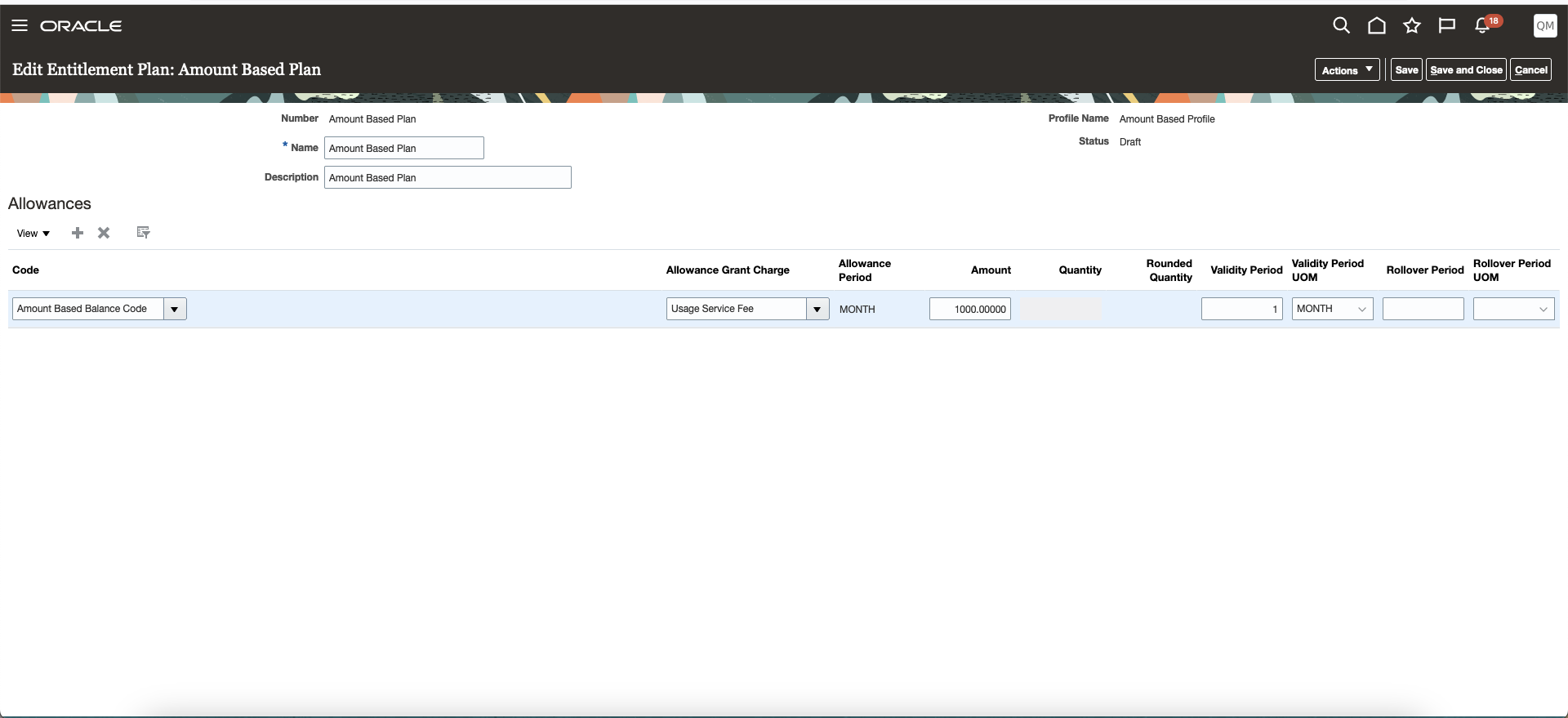 This feature enables the creation of entitlement plans with allowances against recurring or one-time charges, in addition to usage charges. Users can implement their recurring or top-up allowance grant use case by adding allowances in the entitlement plan against recurring charges or one-time charges. All recurring and top-up allowance grants will be tracked and consumed in a balance register, similar to the way allowance grants created from usage charges are tracked and consumed. The balance profile has also been enhanced to include one-time and recurring charges, facilitating the creation of a balance register period and allowance grants from these charges as well.