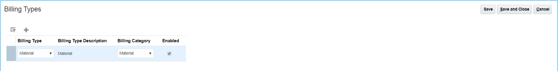 In this Billing Types page, you can setup billing types only after they have been created in the lookup type EGP_MATERIAL_BILLABLE_TYPE.