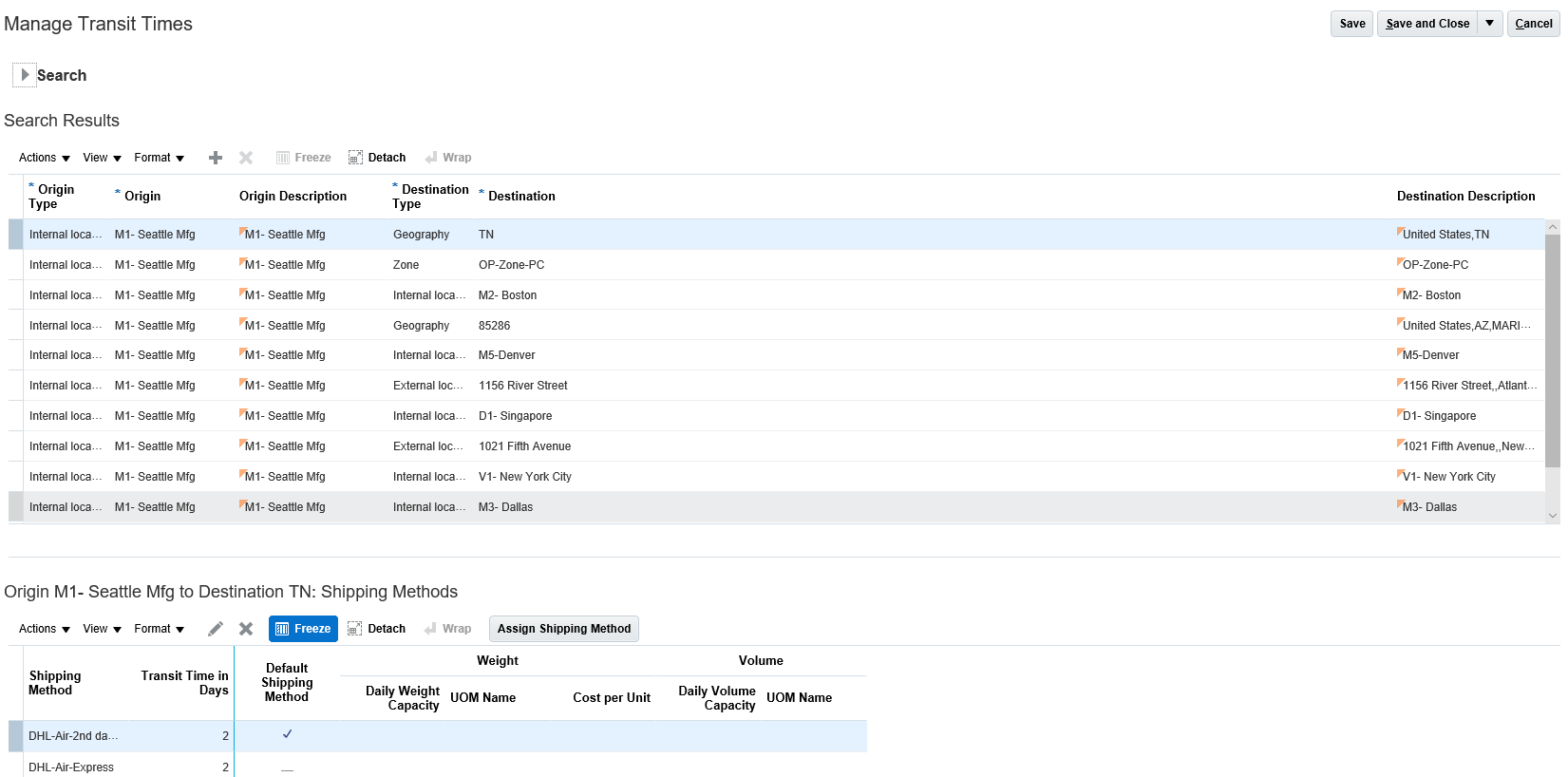 To determine the eligible sources and calculate lead times, Global Order Promising Cloud requires you connect the source and destination location by setting up interorganization parameters and transit times..