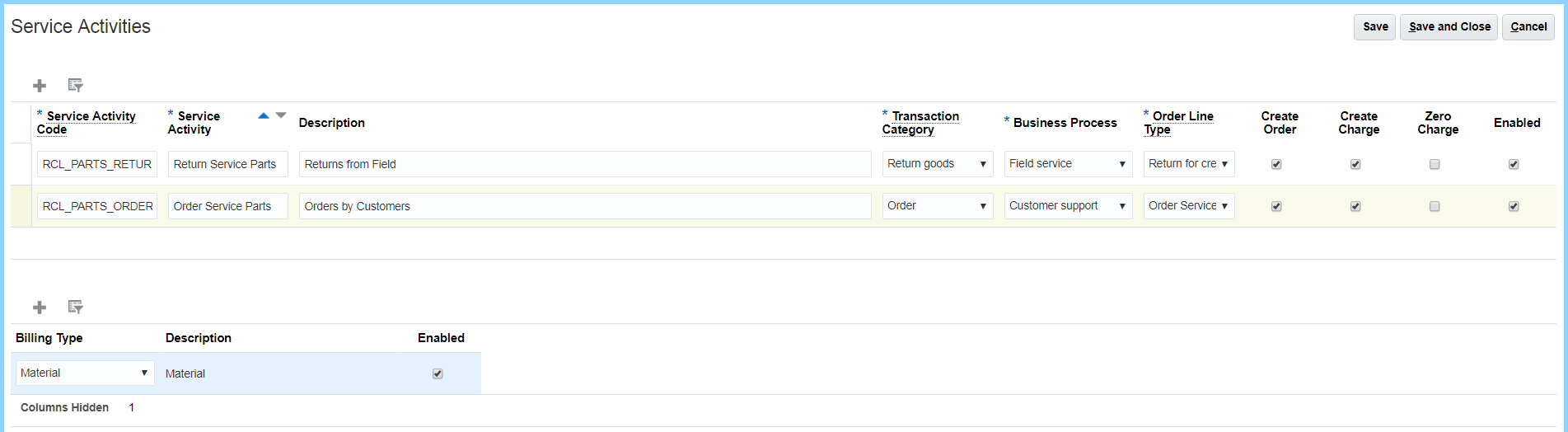 - It is mandatory to associate a billing type with the Material billing category to the service activities used for customer replaceable part shipments and returns..