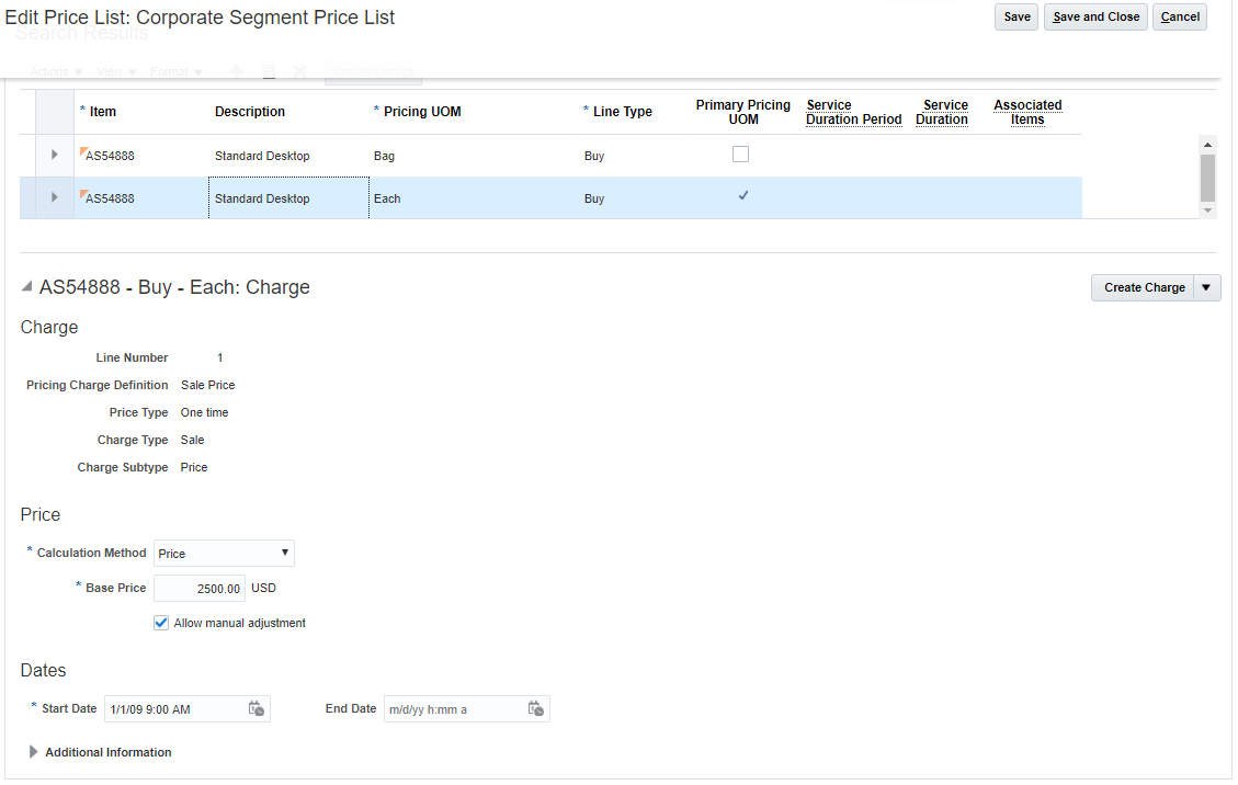 No additional setups are required to make price adjustments in the Edit Charges page.