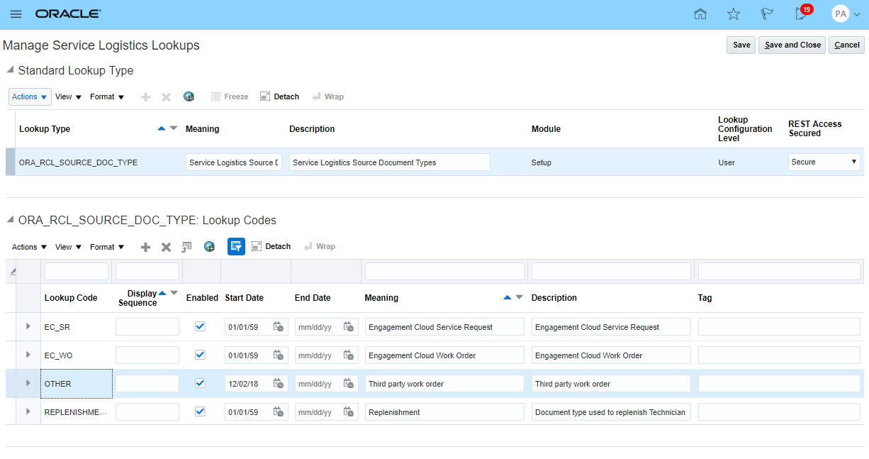 - Service Logistics User Guide: https://docs.oracle.com/en/cloud/saas/service-logistics/19a/index.html