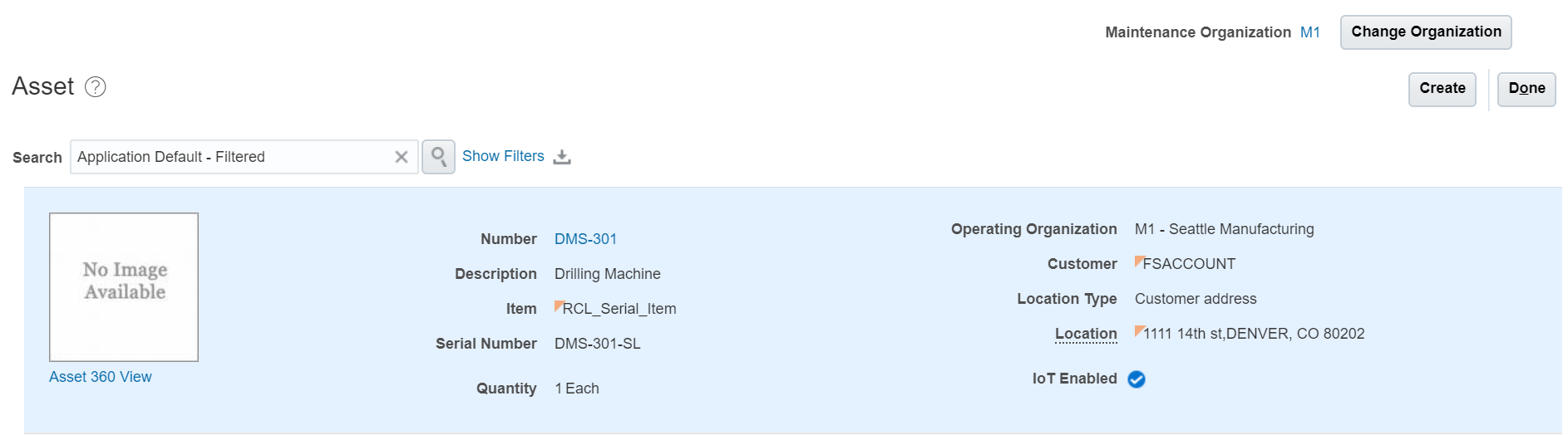 Create an Installed Base asset in Maintenance Cloud with customer association and asset location as the customer address. This address represents, the customer asset installed location being serviced.
