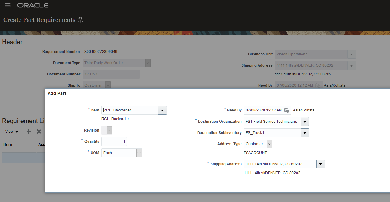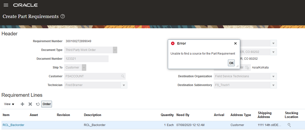 Order Parts from Oracle Field Service Cloud