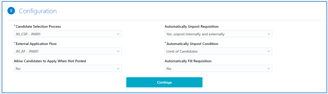- Job Requisition > Job Requisition - Configuration > Automatically Open Requisition for Sourcing