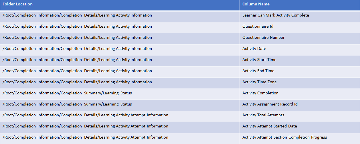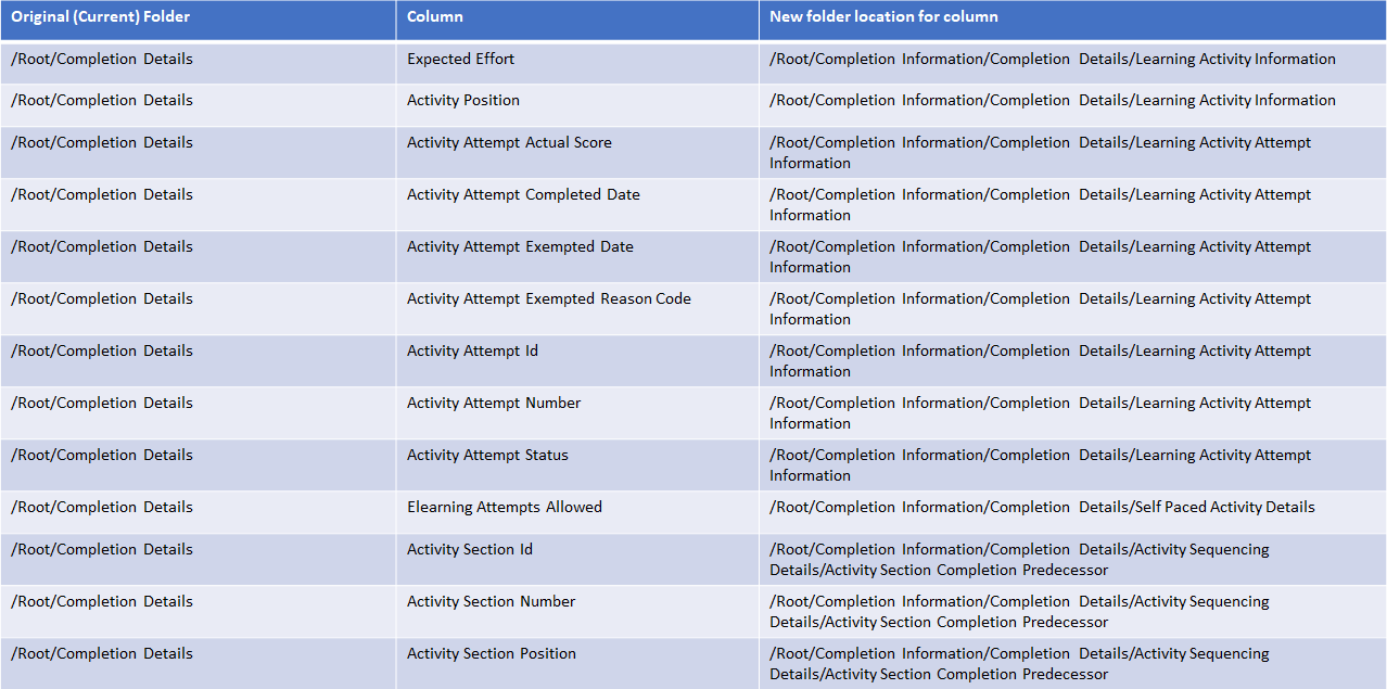 Use the new subject area: Workforce Learning - Learning Records Real Time to configure learning record related analysis objects. This new subject area will replace the Learning Records folder in Workforce Learning - Learning Management Real Time. |
