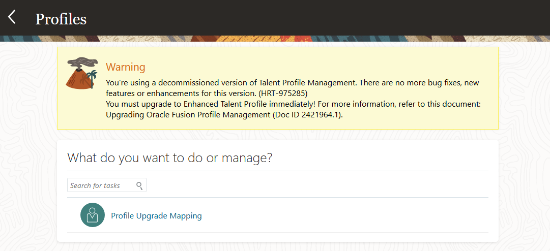 | Profile Management | Classic Talent Profile Management Removed | 21A | Mandatory Upgrade to Enhanced Talent Profile in 20A |