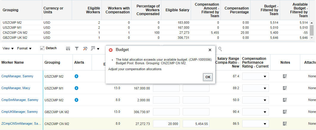 Compensation Worksheet Manager - Compensation Person Assignment Details for Worksheet Manager