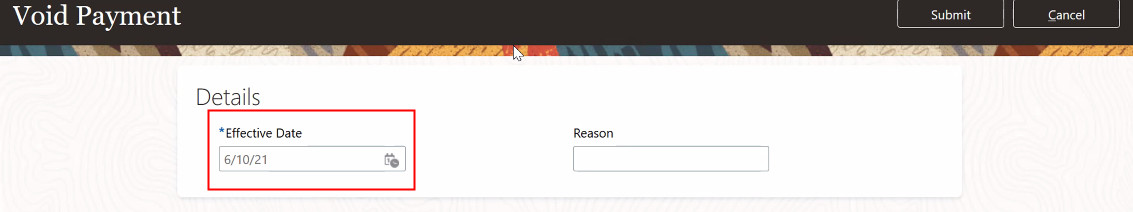 You can now enter an effective date for void and cancel payment corrective actions. This field is still defaulted to the day you are taking action, or today's date, but now it is available to update when needed.
