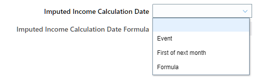 - Imputed Income Calculation Date. The values you can select are event, as of first month, and formula.