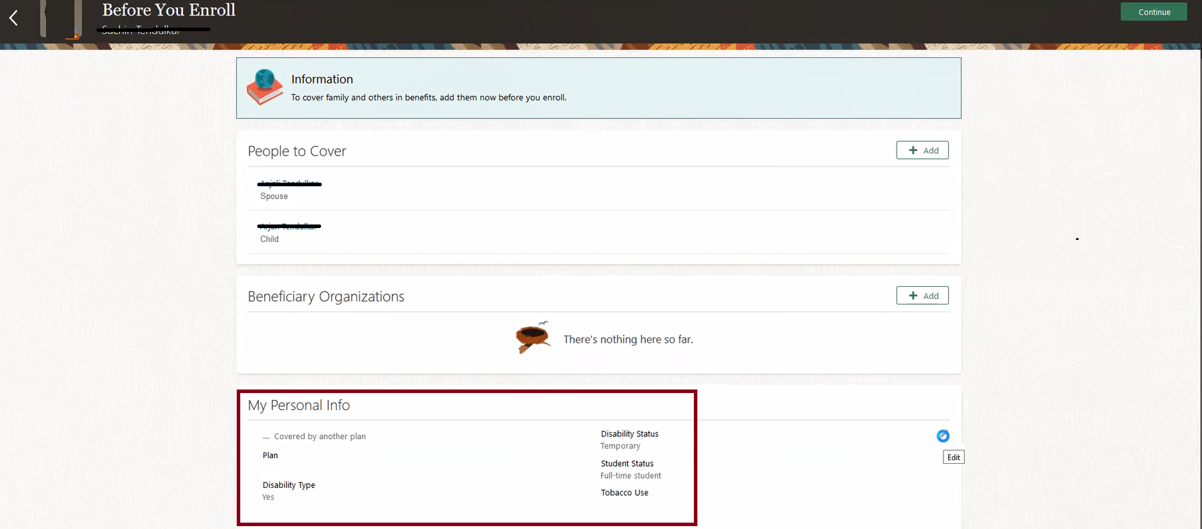 This enhancement enables participants to see their enrollment summary, in both the Confirmation page and the Summary page.