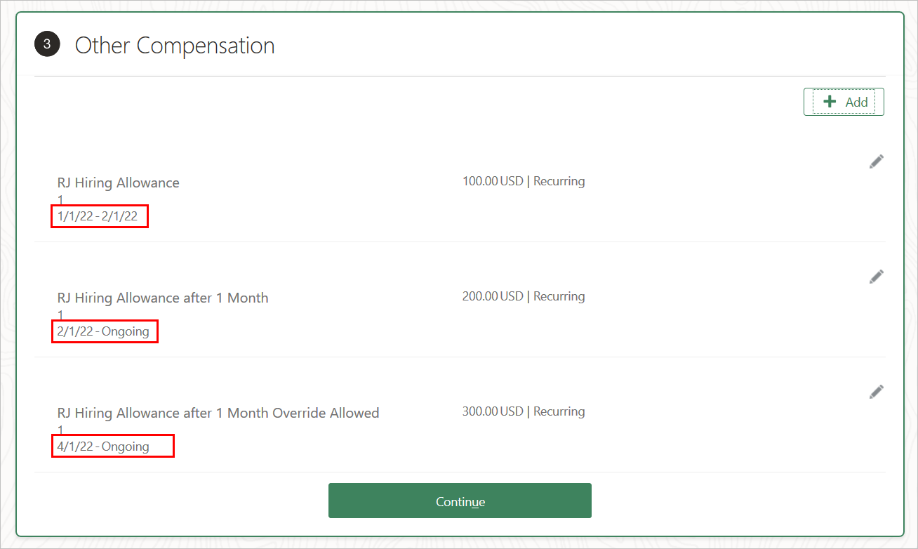 For example, as part of a new hire life event you processed, assume that the new hire is now enrolled in an insurance plan that has a waiting period of 30 days. The insurance plan's coverage is subject to imputed income. You want the new hire's imputed rate to consider the new insurance plan coverage amount only when its coverage starts after 30 days, not before.
