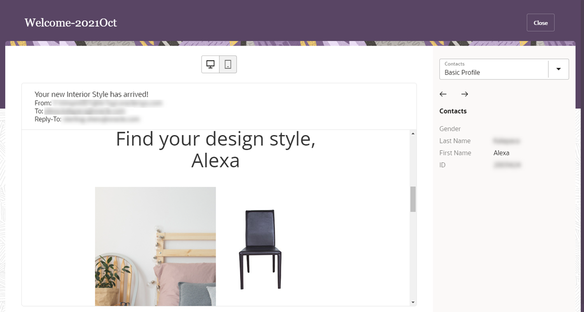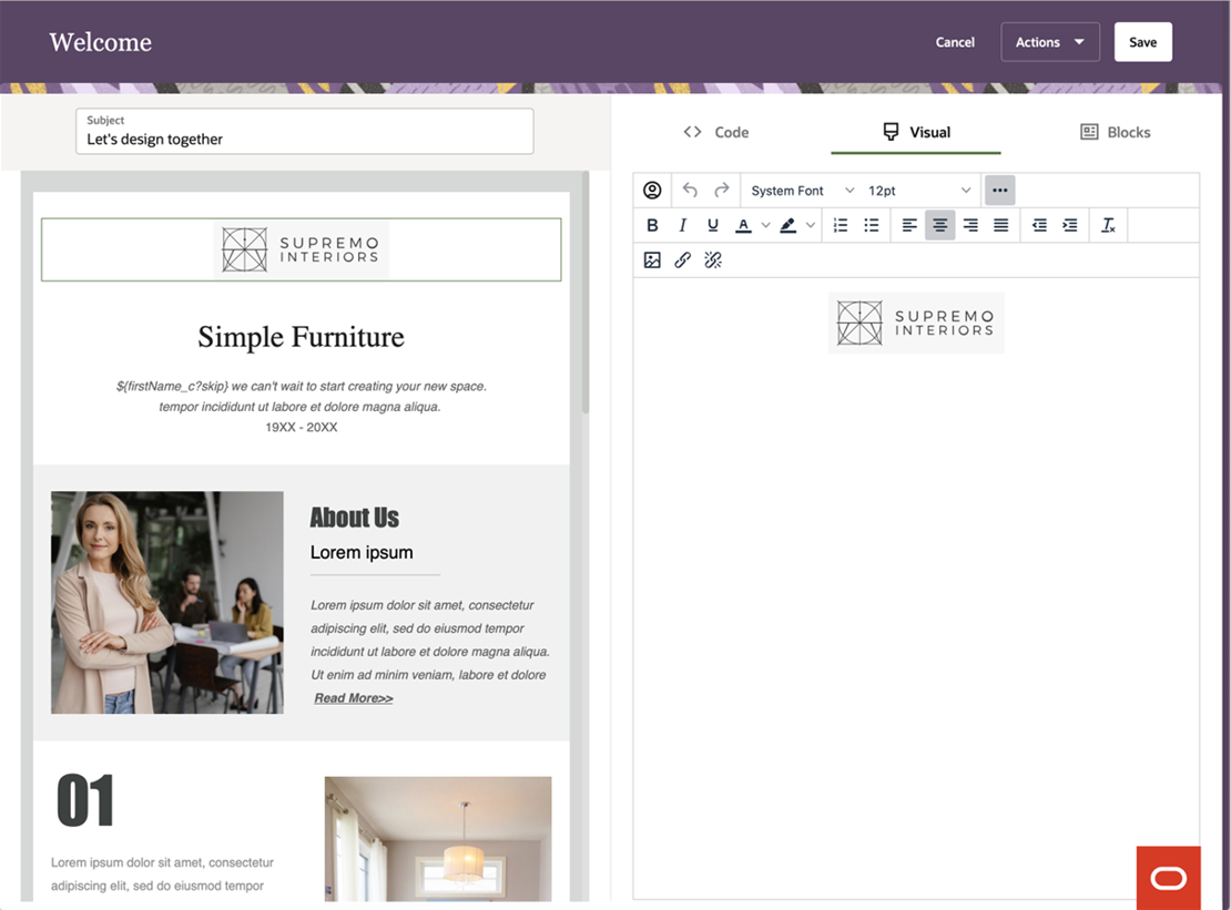 - In Message Designer, preview your personalized content by clicking Actions, and then choosing Preview.