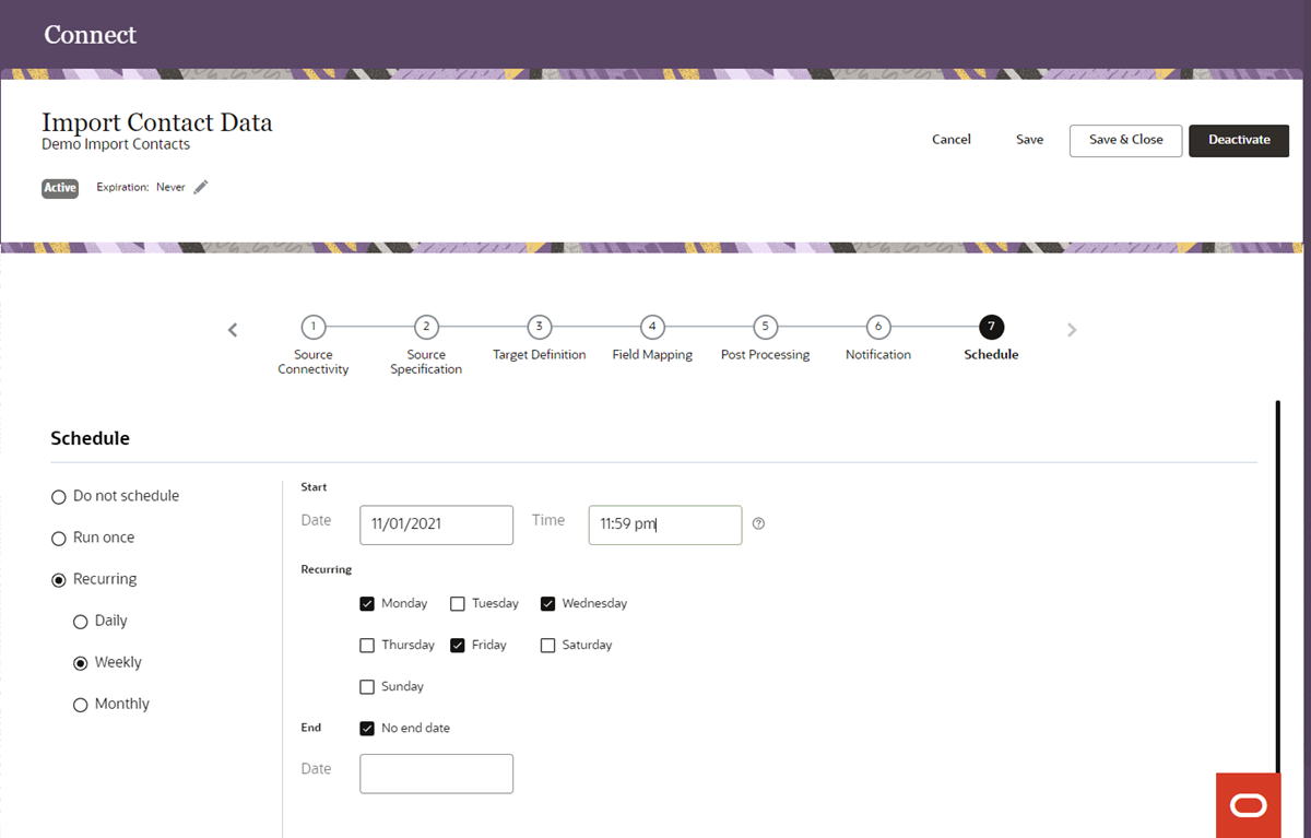 Use the job wizard to create import or export jobs. The simplified user interface provides only the configuration options you need based on the type of job you are creating, and it lets you navigate the steps in any order. When you save the job, validation helps you navigate directly to errors and fix them.