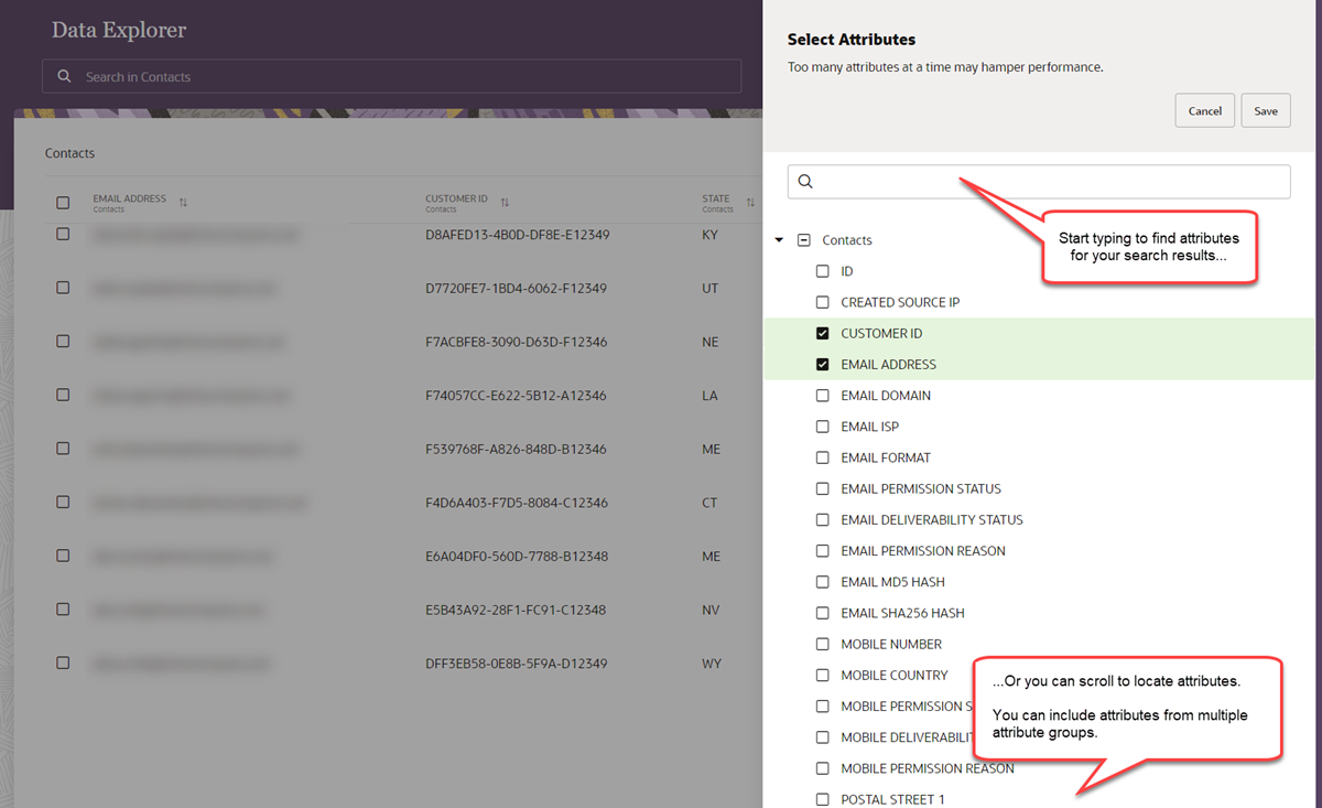 With the Data Explorer, you can easily query and view contact data across attribute groups. You can also manually upload contact data.