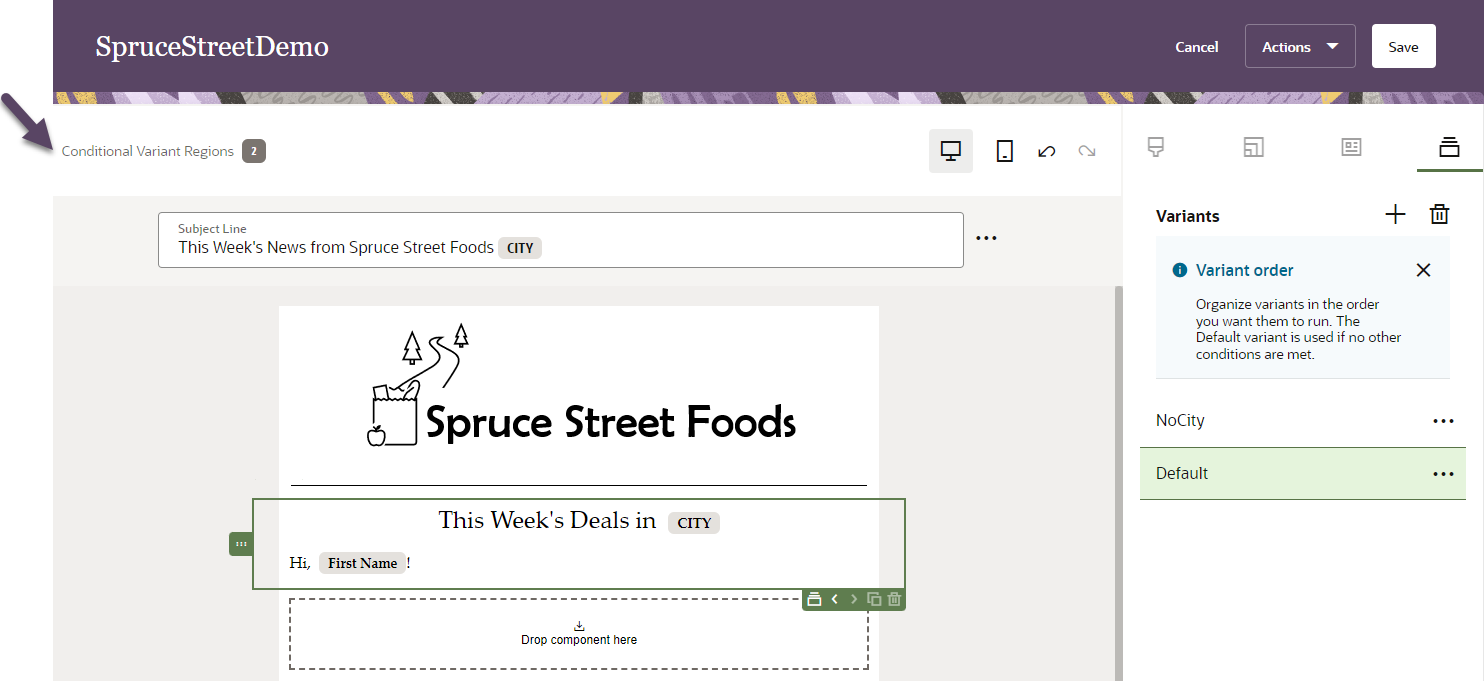 Conditional Variant Regions field (available only for messages created using the Message Designer visual editor)