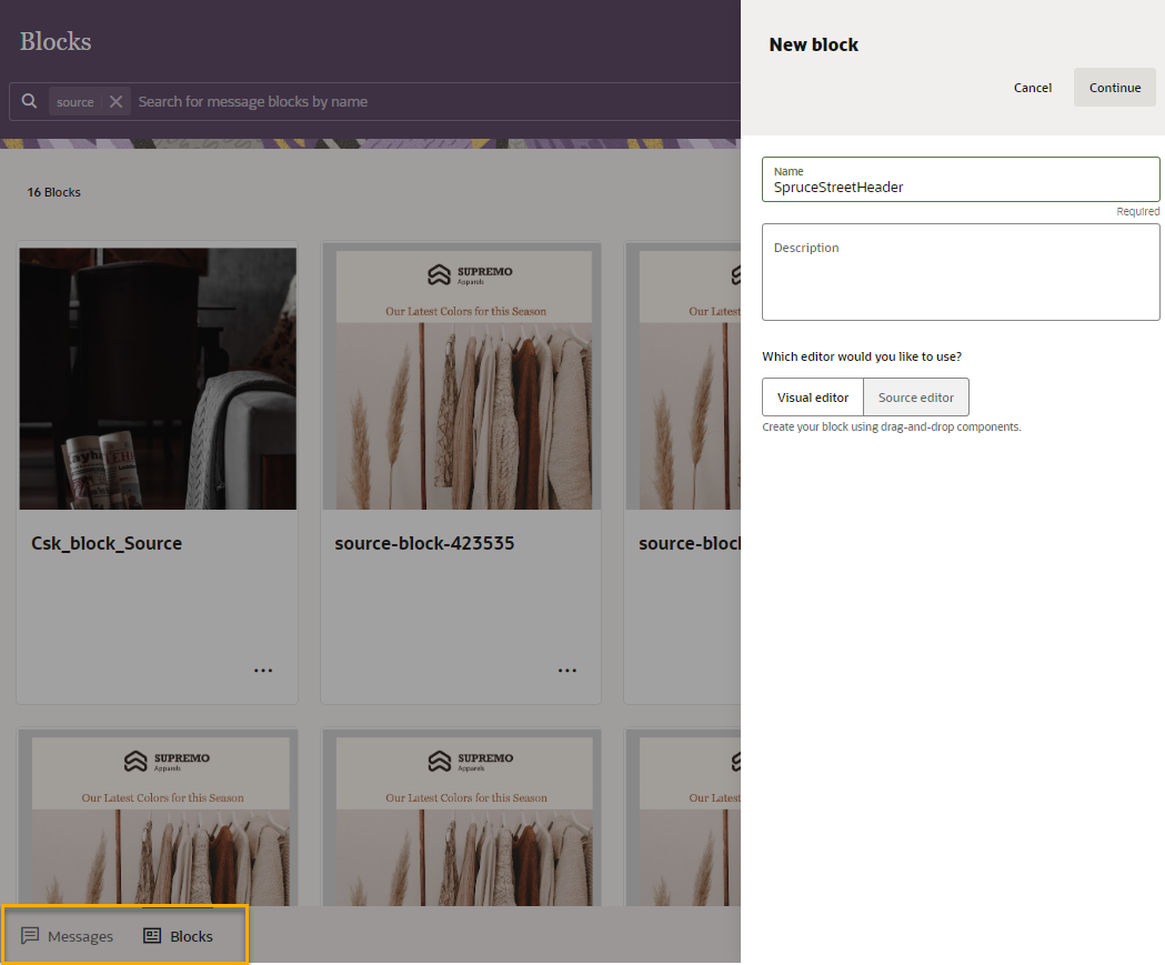 You can now create reusable content blocks using a visual editor, and you can use those blocks in messages that you create in visual editor.