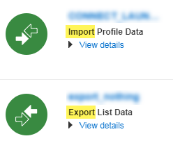 New Icons for Import and Export Jobs on the Manage Connect Page