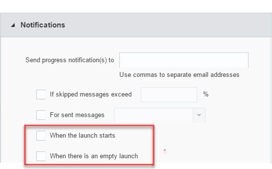 | Launch Start and Empty Launch Notifications for Email Campaigns |