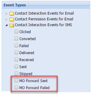 - In the Source step of an Export Event Data Feed job, select the new MO Forward Sent and/or MO Forward Failed check box.