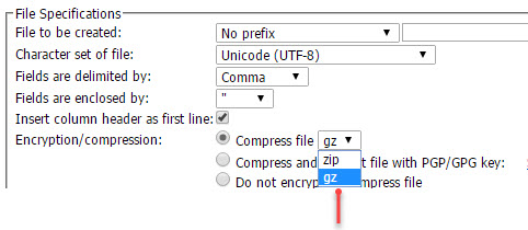 - In the Target File step of the Export Data job, select Compress file, then select .gz.