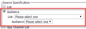- In the Source step of an Export Data job, select Audience, then select your audience.