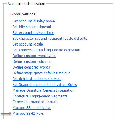 - In the Account Customization section of the Account Management page, select the new Manage SSH2 Keys link to open the Manage SSH2 Keys page.
