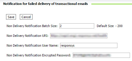 This service is currently limited to API-triggered transactional email messages. A unique transaction ID can also be passed in through the Responsys WS API as an optional data parameter for each triggered email message. Subsequently, the transaction ID will be part of the API payload that contains the failed delivery information. You must provide a REST API endpoint to which Oracle Responsys posts the failed delivery payload on a recurring basis (15 minutes by default).