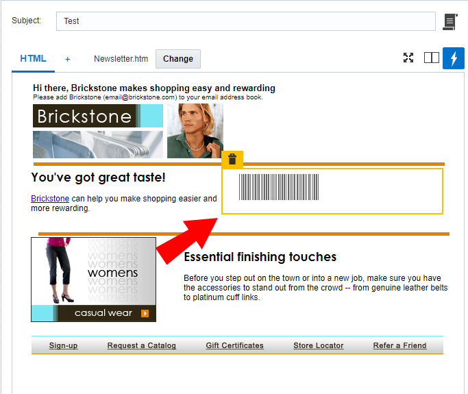 A Barcode Widget is now available to incorporate a barcode in an email message body. You can select the barcode type, size, and so on. The widget then dynamically generates a barcode image based on these parameters.