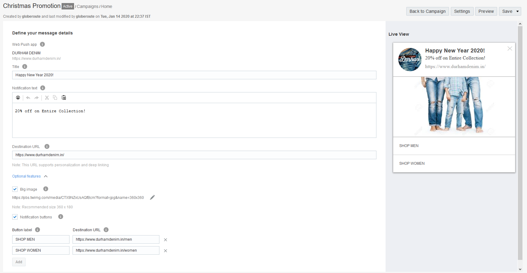 - design Web Push campaigns and schedule launches in the new Web Push Campaign Designer