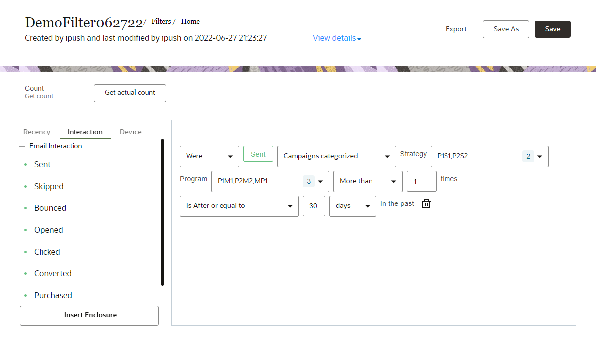 When using the Campaign Categorized condition in Simple Filter Designer, you can now select multiple values for marketing Strategy and marketing Program. The user interface now displays check boxes for selecting these values.