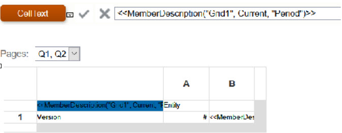 For example: The MemberAlias text function is in the column header, above the row dimensions <<MemberAlias("Grid1", cur, "Entity")>>