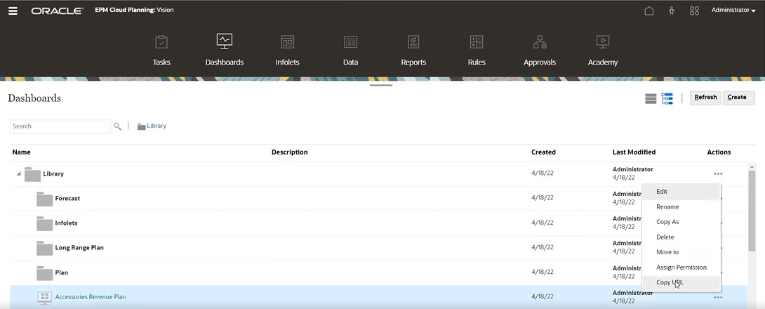 Business Benefit: By adding a Copy URL option for individual artifacts, we've made it easier to integrate with ERP and other Oracle vertical solutions.