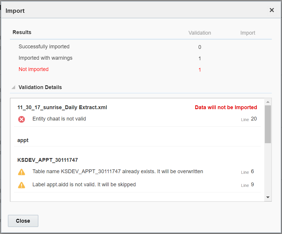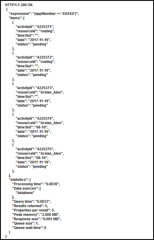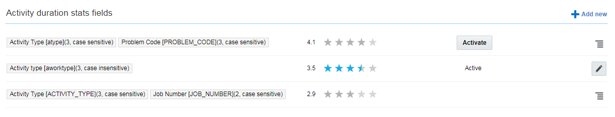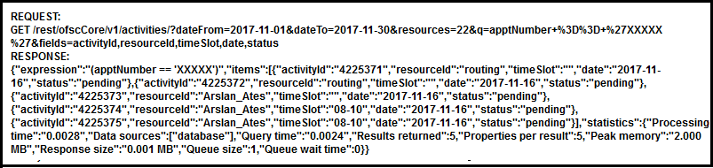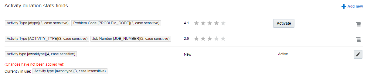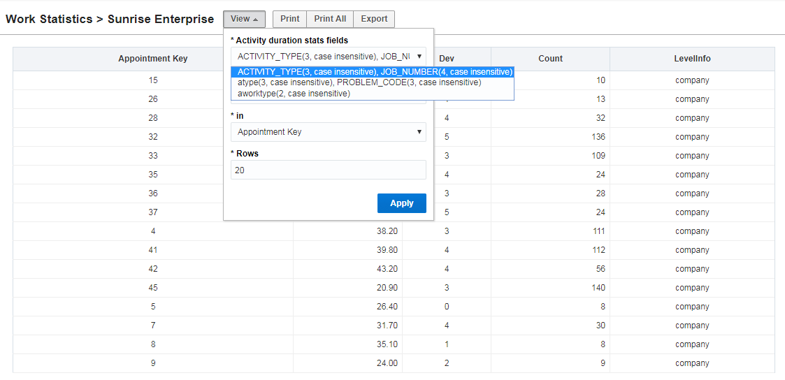 - For entries related to the Statistics page, the value of the Type displays the label instead of the text. For example, 'Type: appt_duration' instead of 'Type: Activity duration stats fields'.