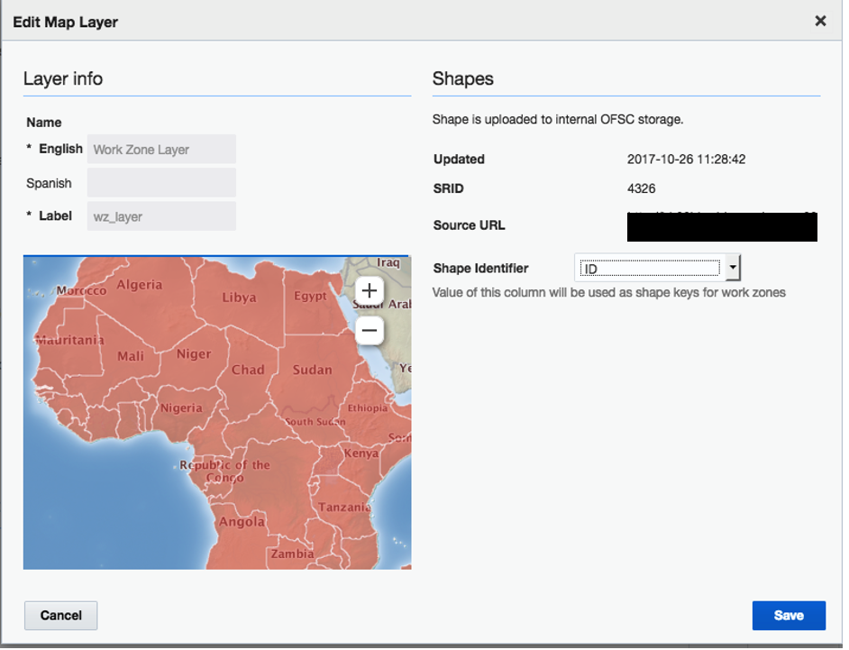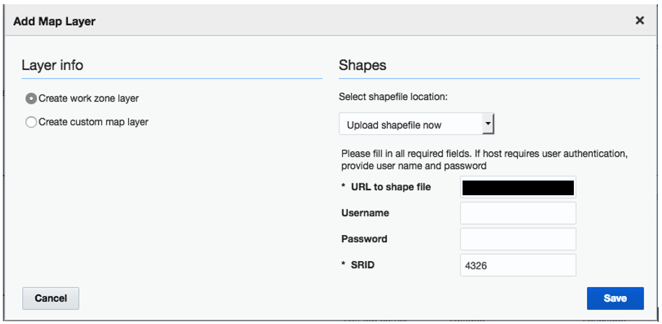 - Fully classified URL of Oracle Field Service Cloud Mobile instance.