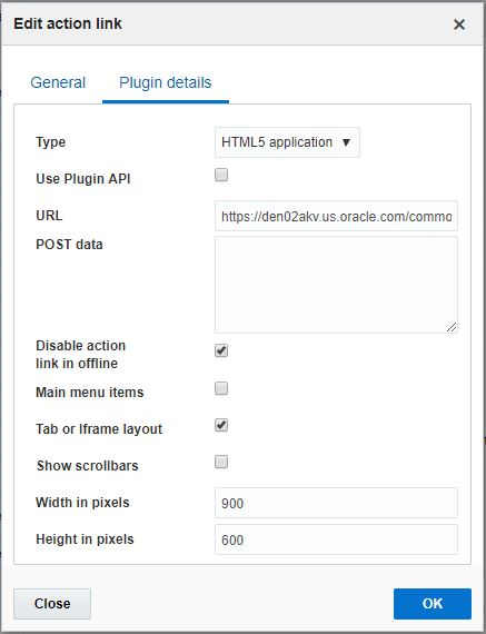The user will have to select the URL of the dashboards which he wishes to embed into Oracle Field Service Cloud