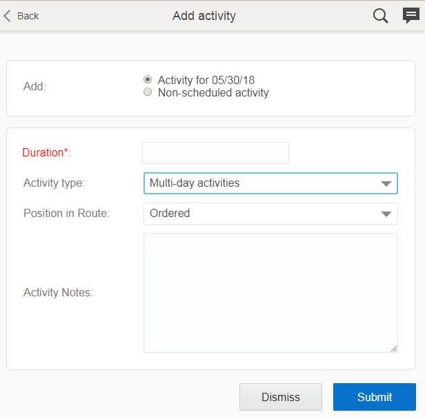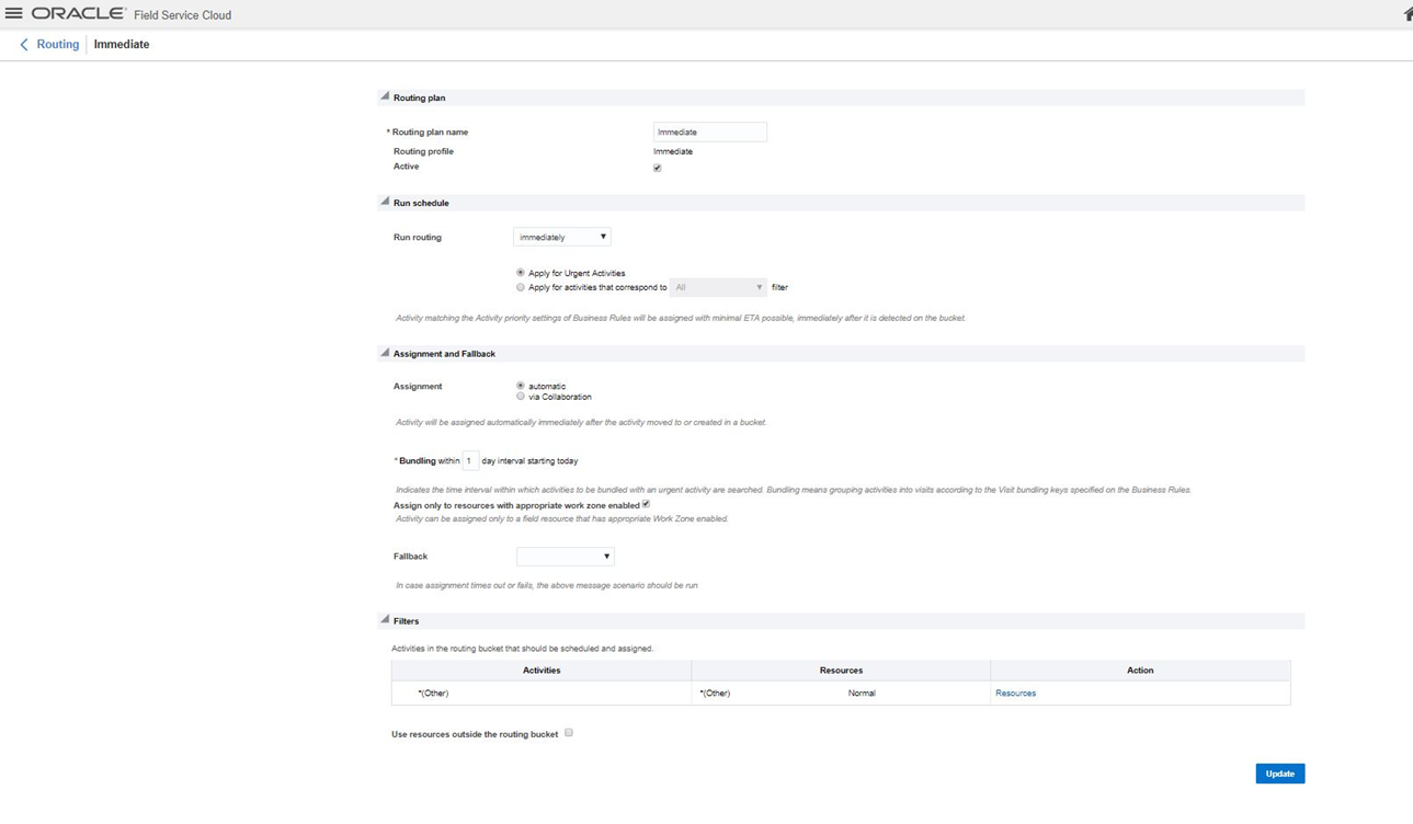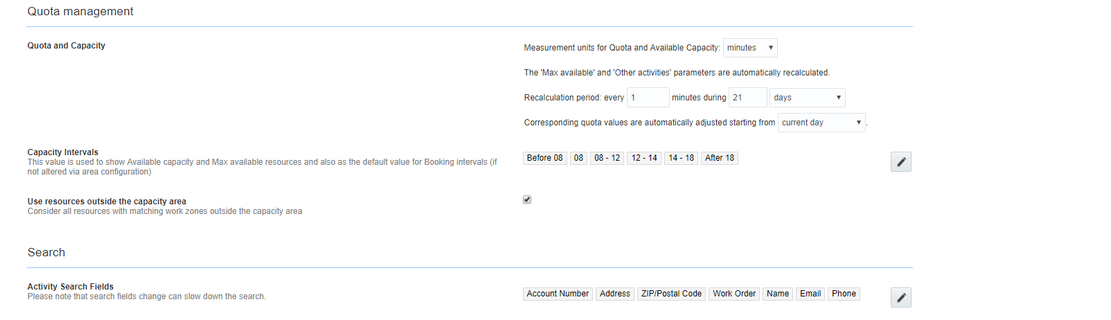 Earlier, you could not configure the duration of unpaid travel time while traveling to the first activity and from the last activity. With the 18C release new travel options have been added to the Resource Type. These options are visible for Field resource, Tool, and Vehicle resource types and found in a new “Working time” section replacing the previously available “Working time includes first travel to activity” and “Working time includes travel to final location” options.