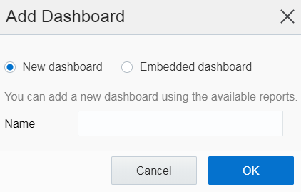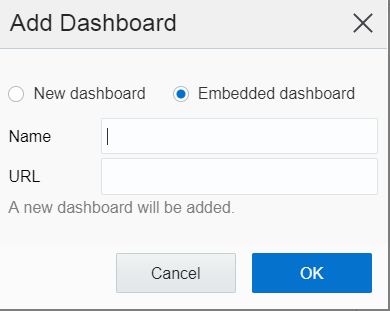 Add Dashboard Dialog Showing Embedded Dashboard Option