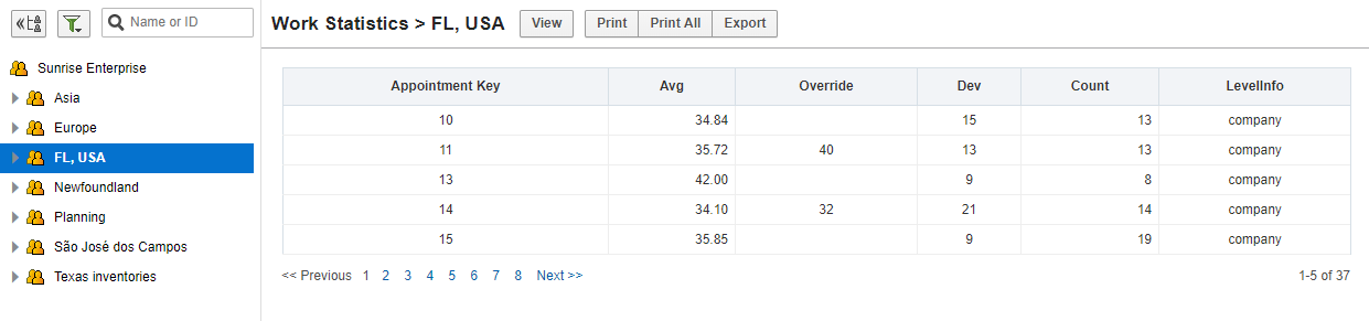 | Using Defaults | Using company defaults (see Default travel average time in minutes under Configuration -> Statistics) |