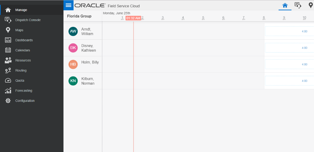 Prerequisite: Requires a subscription to Oracle Field Service Cloud Enterprise and Oracle Field Service Standard Map Cloud Service with Google Maps or Oracle Field Service Standard Map Cloud Service with Baidu Maps. Oracle Maps availability is planned for a future release.