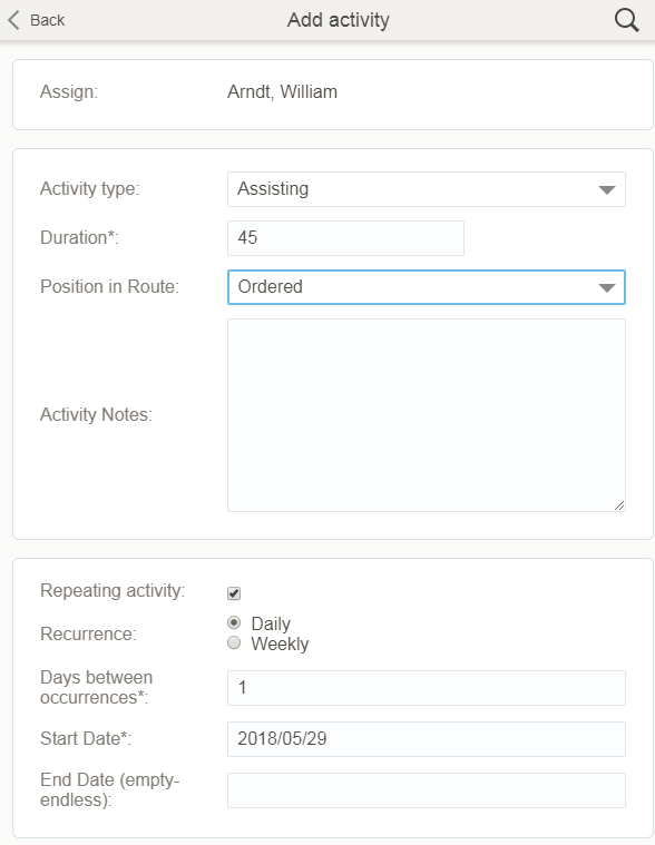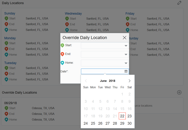 - Travel time from the last activity to the Resources End Location is included from the Working Time End