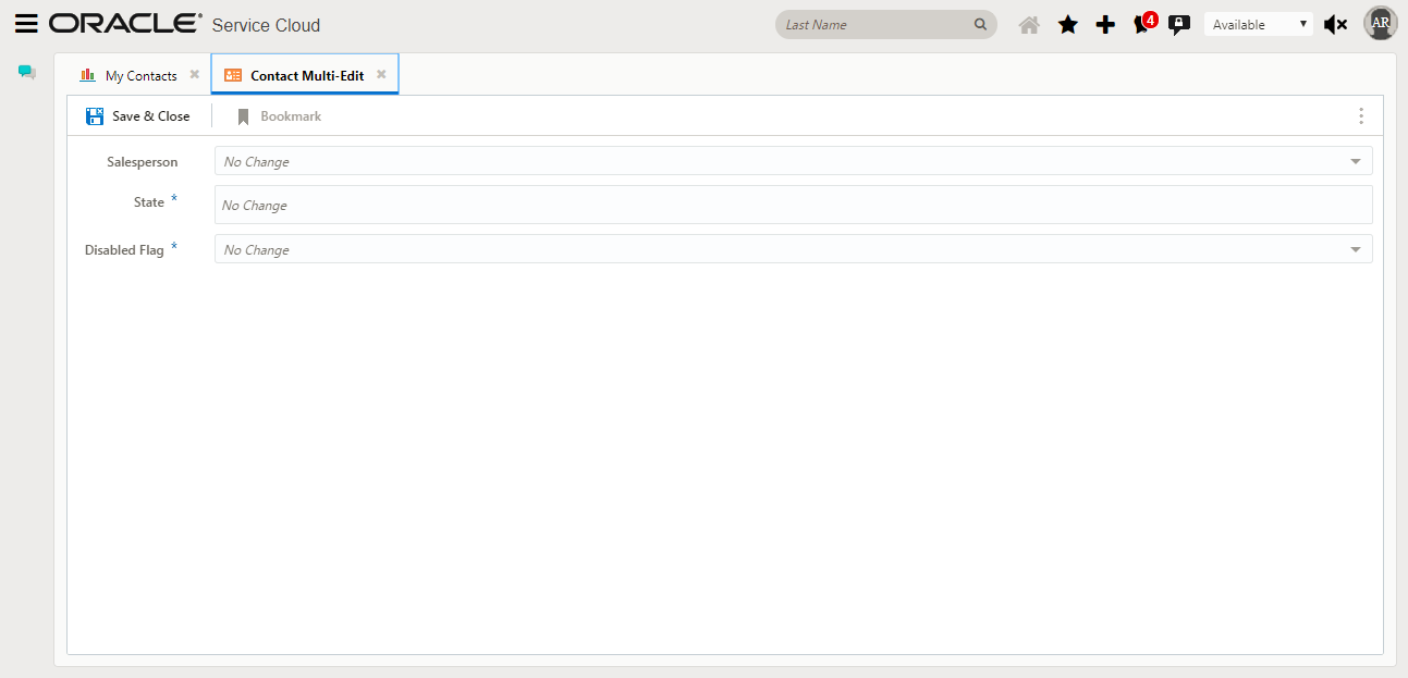 Multi-editing allows you to update more than one record in a single operation instead of performing the same action on each individual record. This feature saves time when you need to make the same change to several records. We now support multi-edit workspaces for the Contact object on the Agent Browser UI. This includes runtime support for Contact fields, controls and options configured using the Service Console Workspace Designer.