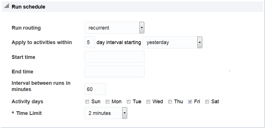 Earlier releases of Oracle Field Service Cloud allowed activities to be routed daily starting from today up to 8 days in the future. This release introduces multi-day routing. Multi-day routing allows you to create a single routing plan (manual, once a day or recurrent) that can be configured to route activities up to 99 days in the future. This allows: