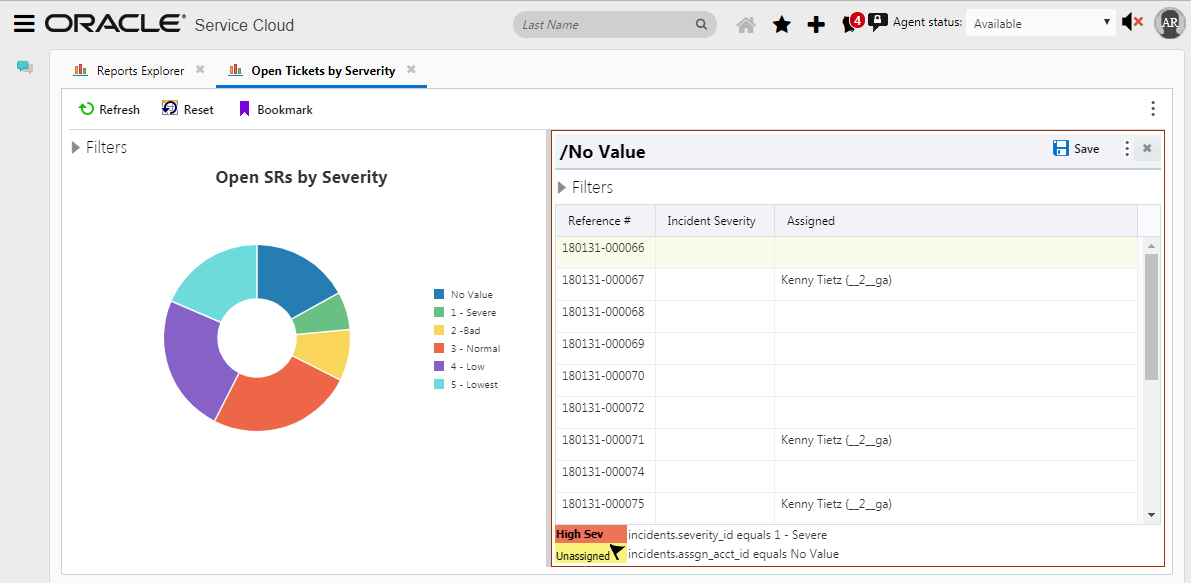 See resulting Agent Browser User Interface filter area for the report below.
