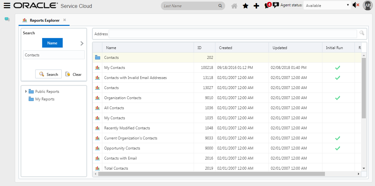 Reports are located in folders within the Reports Explorer. Folders are displayed in a tree structure which can be expanded or collapsed to hide or display their contents. Reports that are accessible by multiple staff members are contained in the Public Reports folder, while private reports are stored in the My Reports folder. Private reports can only be viewed by those that created them.